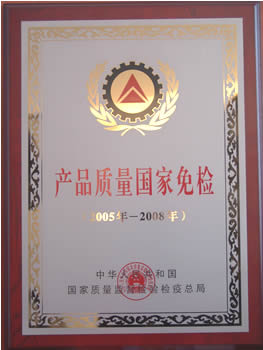 產品質量免檢證書