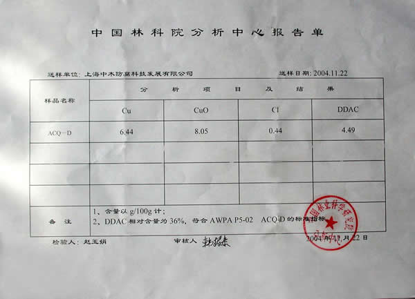 木材防腐劑檢測報告(一)